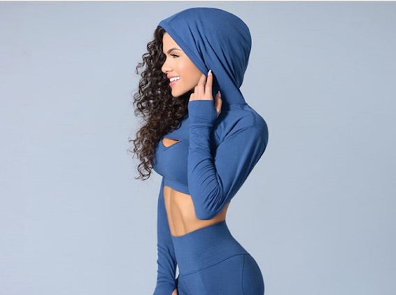 •Sports bra light to medium support.•Crop Hoodie is light high stench fabric.• Non see-through