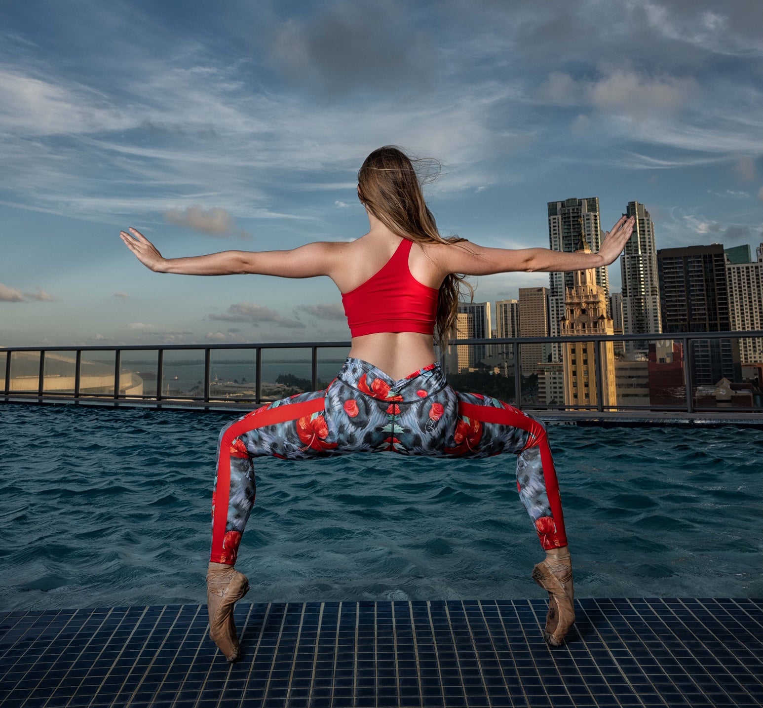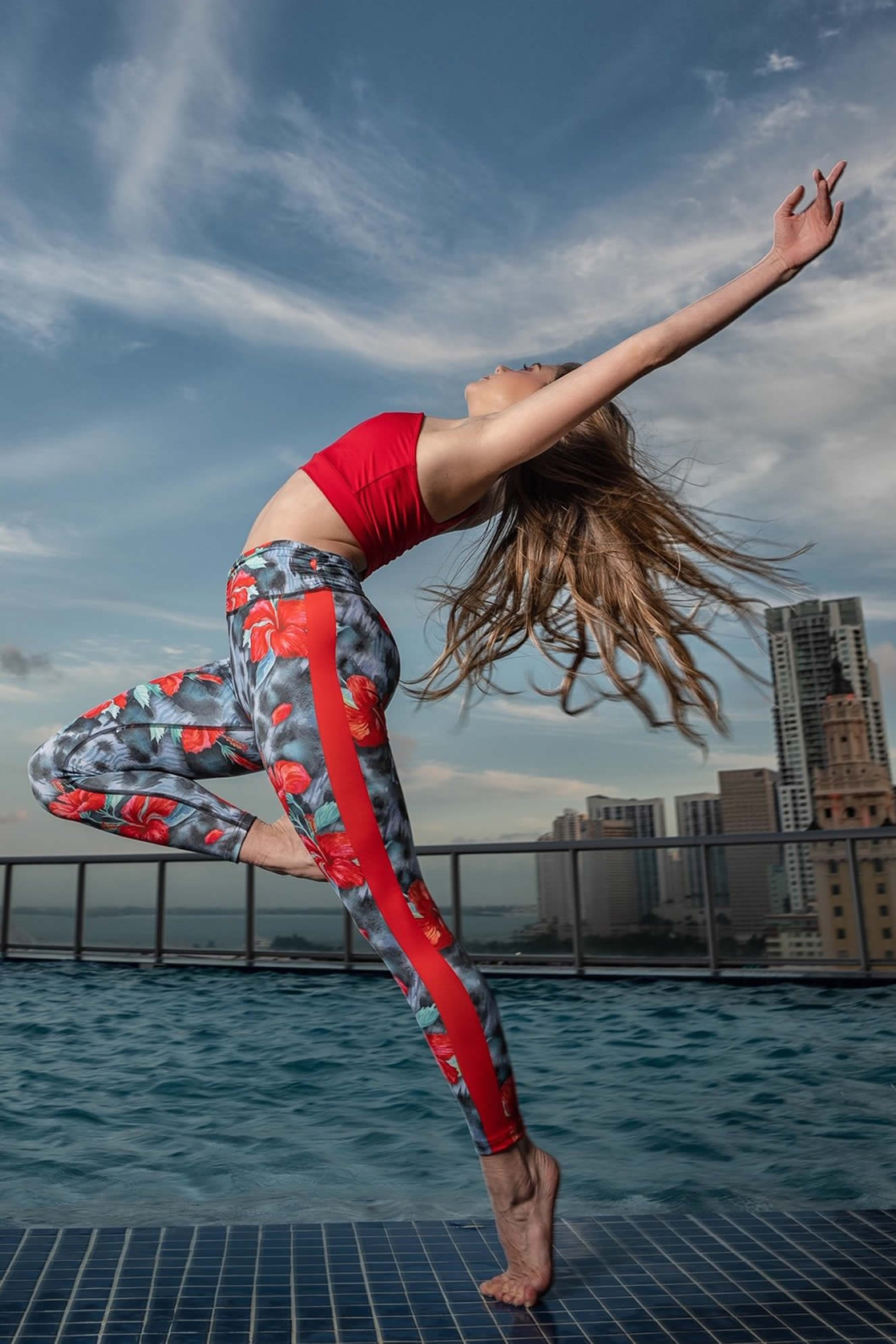 Our beautiful Red Paradise Leggins are made of a light high stretch, silky-soft fabric with a built-in shapeware to provide an instant butt lift with ruched detailing at mid-rise waist.